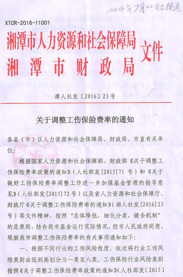 《關(guān)于調(diào)整工傷保險費率的通知》